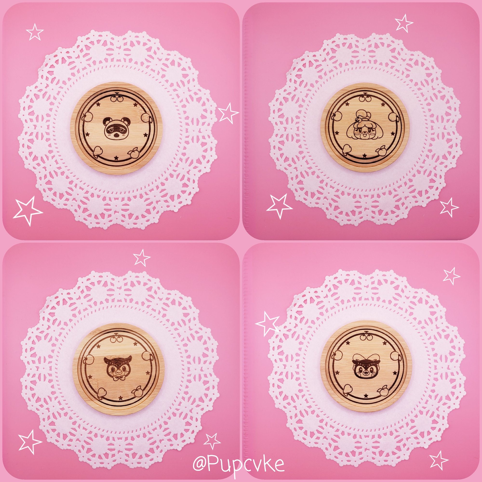 Whether you're sipping on Brewster's Special Blend or staying cool with some fresh juice, these ACNH-inspired coasters are the perfect cup holders for your beverage of choice! Coasters are made of bamboo wood and come engraved with a chibi portrait of your favorite animal neighbor to keep you company while you sip away.