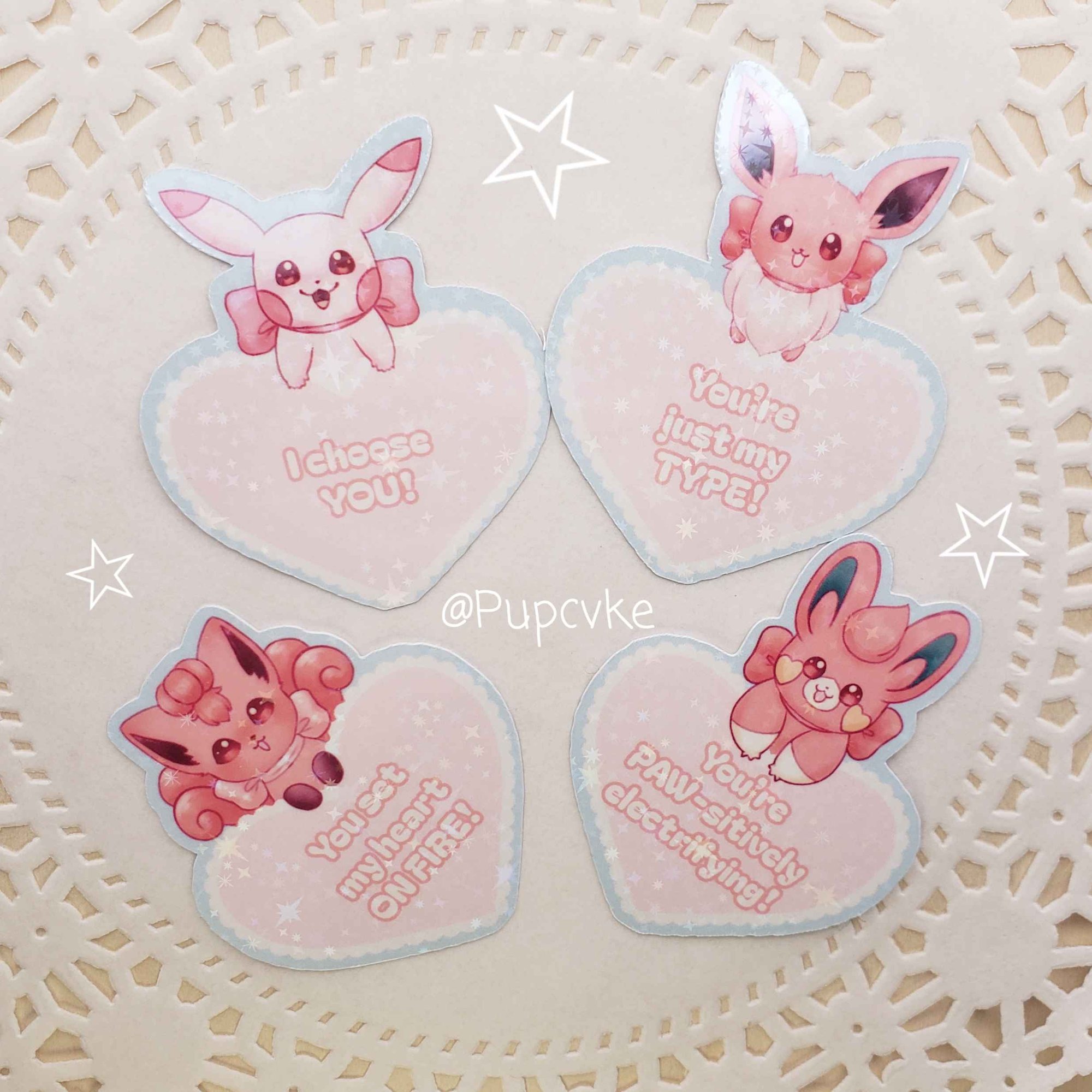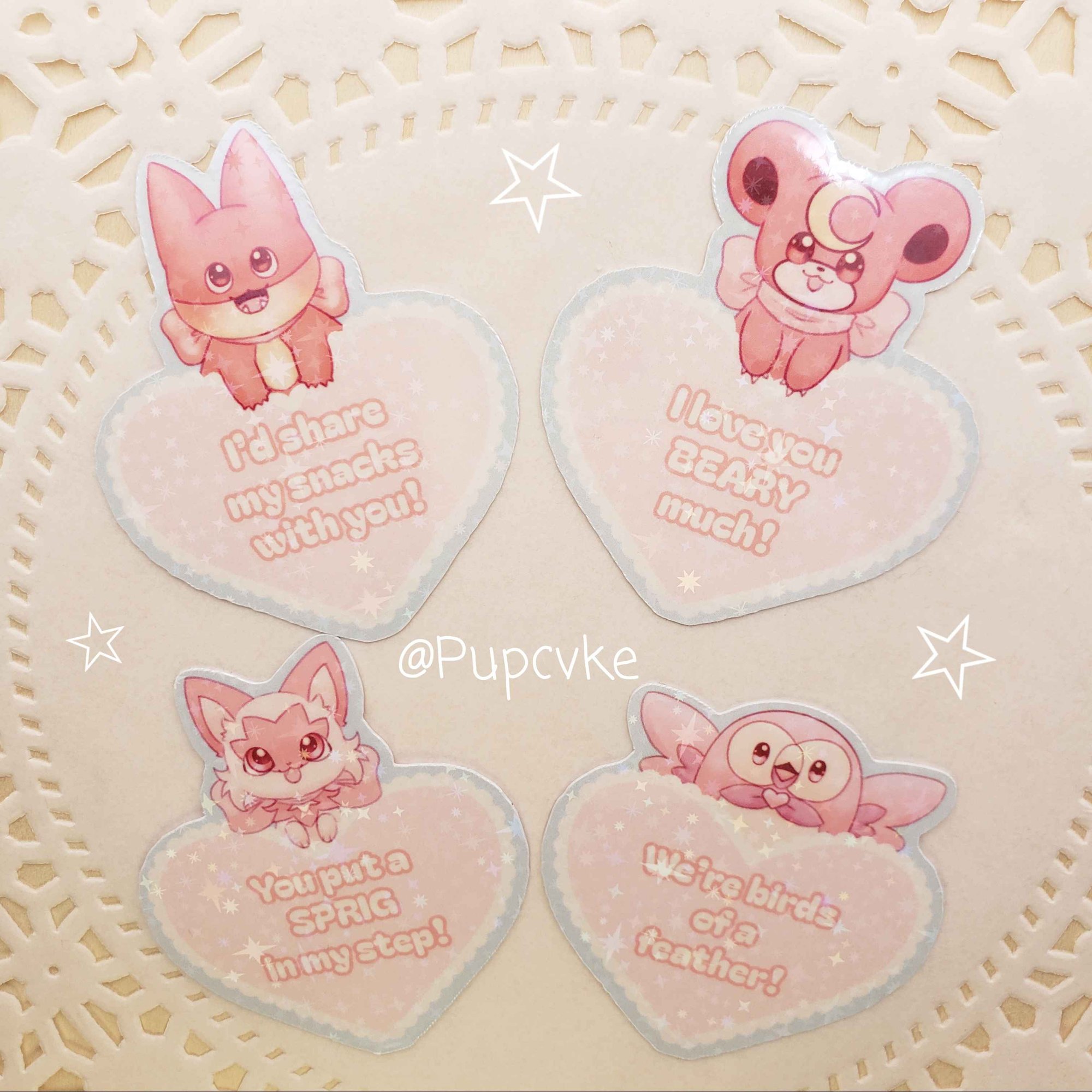 Whether you're spending Valentines Day snuggling with your significant other or chilling with you pals, send your fellow trainers some love with these pink Pokemon-themed Valentines stickers! Each sticker comes printed with a sweet message and can fit inside the matching Loveball envelope (sold seperately). Purchase all 12 stickers for a small discount~