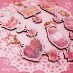 Each keychain is made with basswood and UV resin with a holographic shimmer to add some extra sparkle.